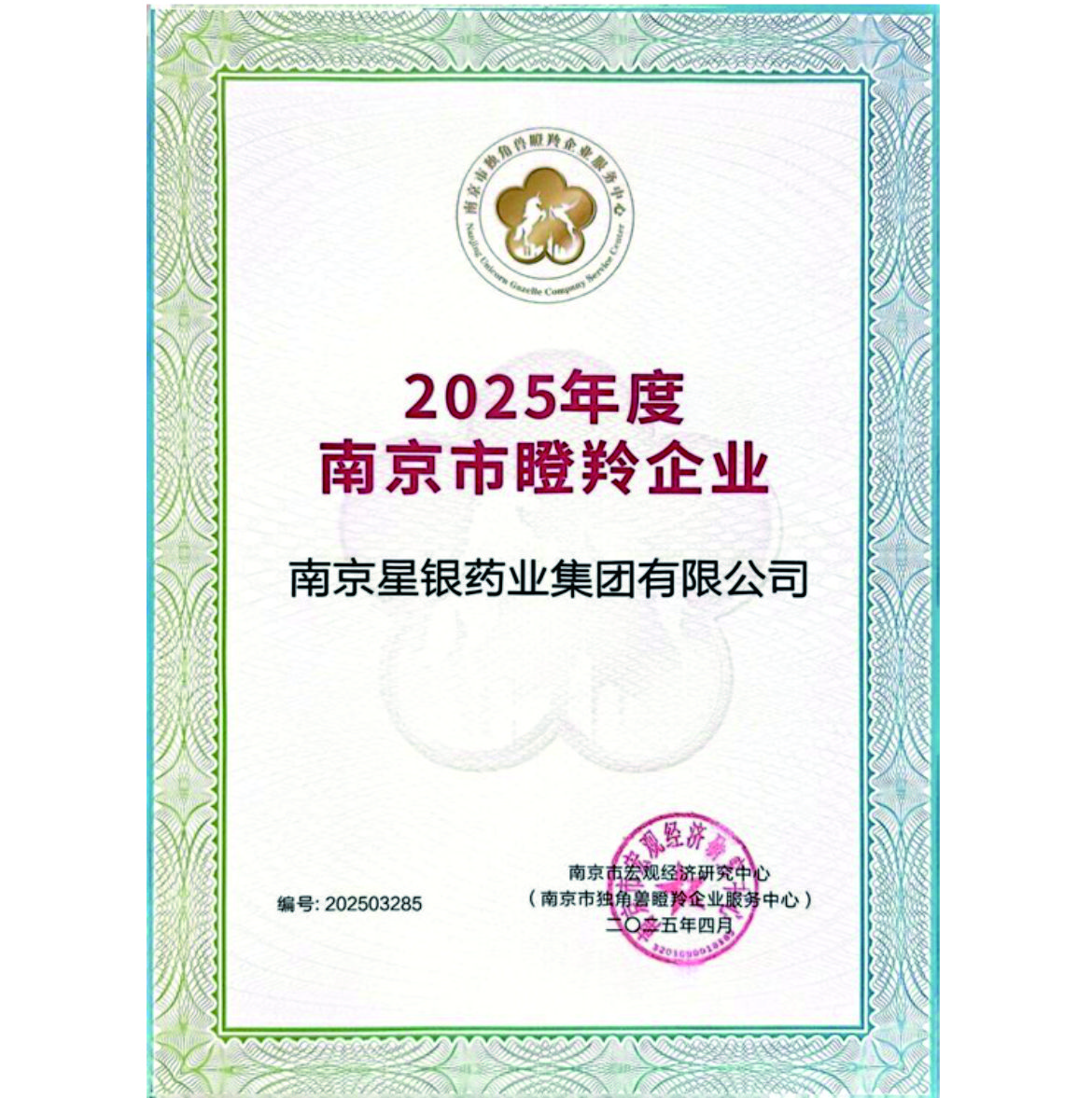 25/06-13Recently, the "2025 Nanjing Unicorn, Cultivation Unicorn, and Gazelle Enterprise List" was officially announced. Nanjing Xingyin Pharmaceutical Group Co.,Ltd. was successfully selected as a gazelle enterprise list based on its innovative breakthroughs and rapid growth in the field of biomedicine. The achievement of this honor signifies that Nanjing Xingyin Pharmaceutical has become an emerging force in promoting high-quality regional economic development in terms of technology research and development, market expansion, and industry influence.